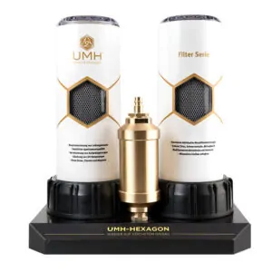 Nach der Filterung wird das Wasser mit dem UMH Pure aktiviert und energetisiert. Handgefertigte Glasphiolen erzeugen ein hochstabiles Energiefeld was auf das durchfließende Wasser übertragen wird. Das Wasser wird hexagonal strukturiert und optimal zellverfügbar gemacht.