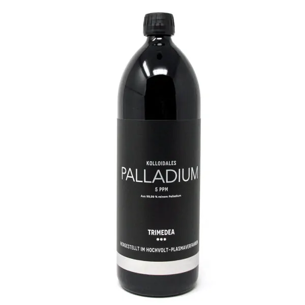 Bei echtem kolloidalen Palladium handelt es sich um sehr feine Palladiumpartikel, die in Wasser schweben und keine Verbindung mit dem Wasser eingehen. Die Größe der einzelnen Teilchen liegt zwischen 1 und 20 Nanometer (1 nm = ein milliardstel Meter).